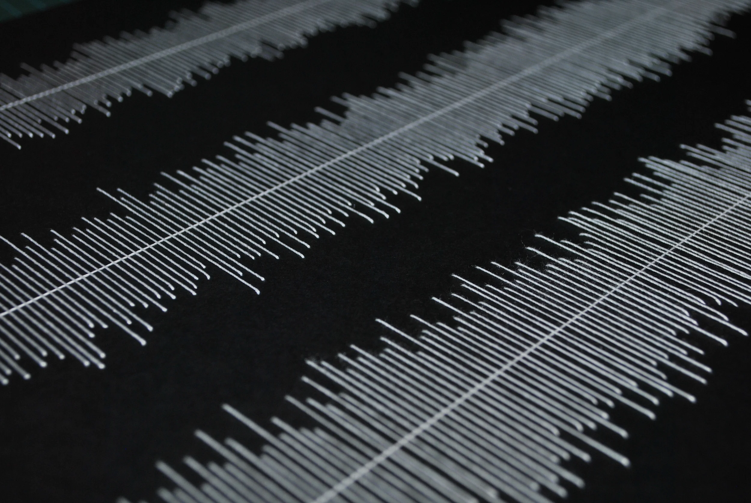 Stitched visualisation of Whole lotta love. Each horizontal line represents 1 minute of audio.